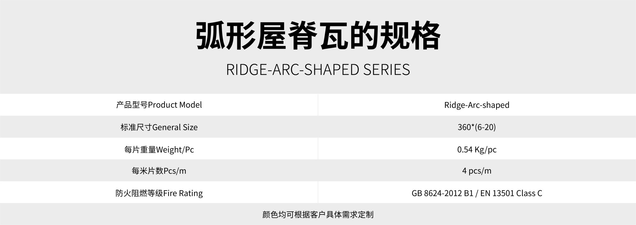弧形屋脊瓦導(dǎo)熱系數(shù)為0.325W/mk,是粘土瓦的1/3,厚水泥瓦的1/5,0.5mm厚彩鋼瓦的1/2000。在不考慮加保溫層的情況下,屋面屋脊瓦的隔熱保溫性能達(dá)到更佳。